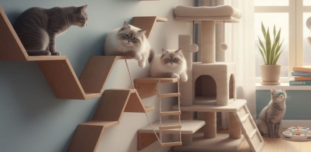 - Wall-Mounted Shelves: Install “cat walks” along your walls. This creates a high-speed highway for your cat to move across the room without touching the floor.