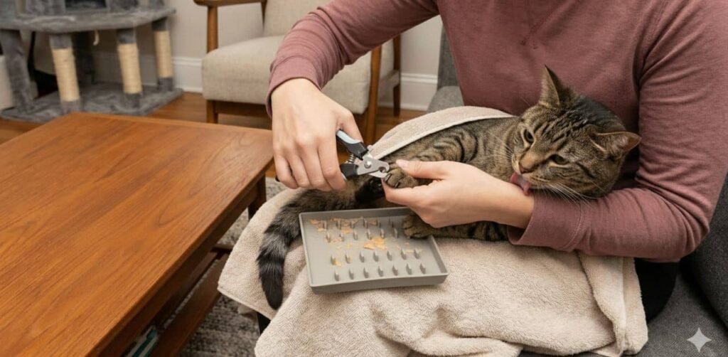 - The Distraction Method: Smear a little bit of lickable treat (like Churu) on a silicone mat or even the table. While the cat is busy licking, you can usually clip 3-4 nails before they even realize what’s happening.