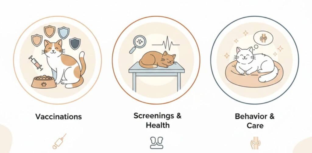 - Vaccinations: Kittens need a different schedule than seniors.