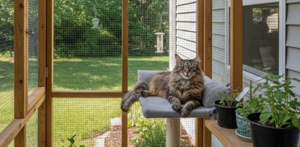 If you have a balcony or a backyard, consider a Catio (Cat Patio). This is the ultimate form of Indoor Cat Enrichment in the US. It allows your cat to feel the wind and smell the fresh air while remaining 100% safe from predators and traffic.