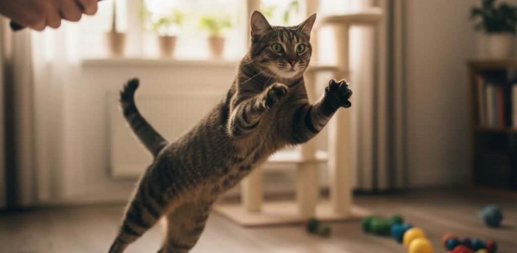 The biggest mistake owners make is leaving the same toys out for months. For effective Indoor Cat Enrichment, you must rotate the toys. Keep only 3-4 toys out at a time and swap them every week. This makes “old” toys feel brand new again.
