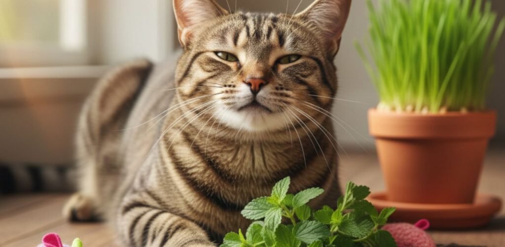 • Safe Plants: Growing “Cat Grass” (Wheatgrass) inside allows your cat to safely nibble on greens, mimicking their outdoor experience.