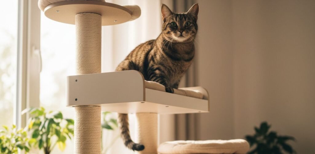 Cats feel safest when they are high up. In the US, most modern pet homes prioritize Vertical Enrichment.